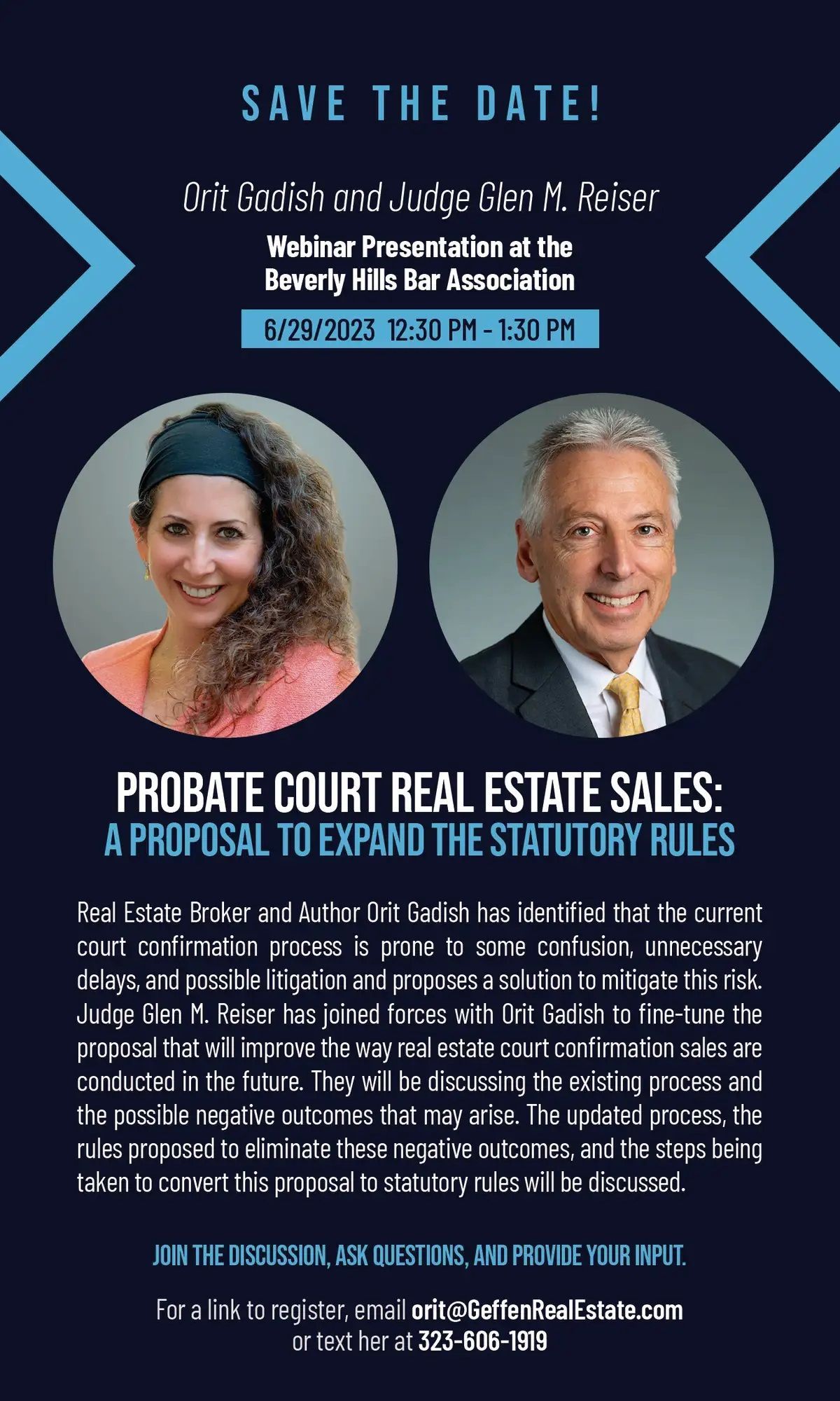 Watch the Presentation: Geffen Real Estate's Orit Gadish and Probate Judge Glen M. Reiser's Presentation at the Beverly Hills Bar Association "Probate Court Real Estate Sales: A Proposal to Expand the Statutory Rules"